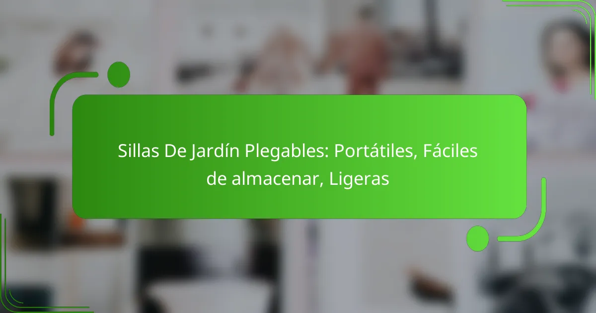 Las sillas de jardín plegables son asientos que pueden ser doblados para un almacenamiento compacto. Generalmente, están diseñadas para ser ligeras y portátiles, lo que las hace ideales para su uso en exteriores. Suelen incluir características como estructuras resistentes y superficies cómodas para sentarse.