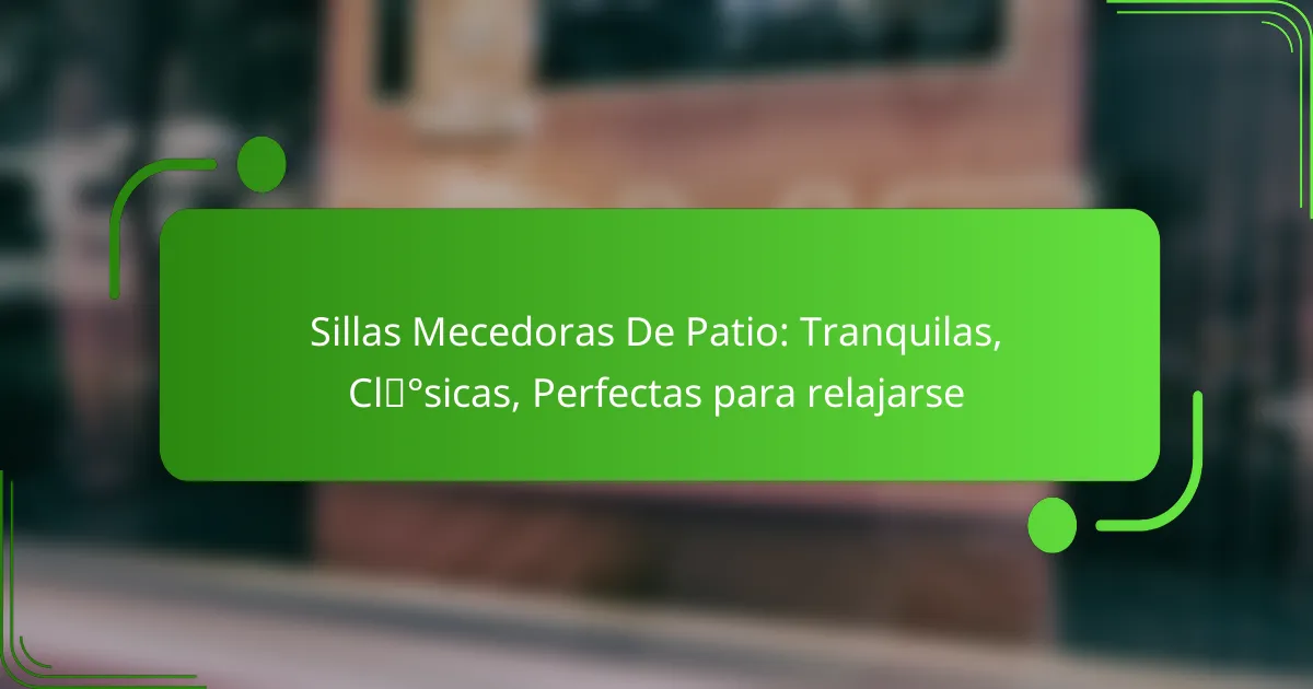 Las mejores sillas mecedoras de patio para relajarse combinan comodidad, durabilidad y estilo. Al elegir una, es fundamental considerar factores como el material, la ergonomía y las opciones de personalización para asegurar una experiencia placentera.